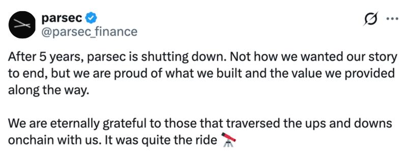 The firm announced "Parsec is shutting down" through a post shared on X this Thursday, with CEO Will Sheehan explaining that the "market zigged while we zagged a few too many times."